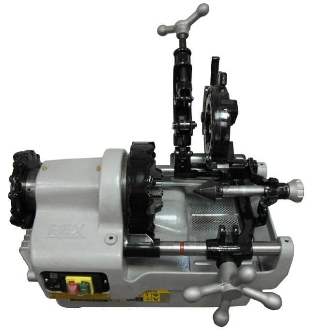 Резьбонарезной станок FR50AV CE – изготавливается в Японии. Предназначен для нарезания дюймовой конической резьбы BSPT R на трубах диаметром 1/2" – 2". Так же может использоваться для нарезания болтовой резьбы диаметром 8 – 52 мм и резьбы типа NPT на трубах диаметром 1/2" – 2" – при наличии соответствующих резьбонарезных головок и ножей. Для нарезания резьбы на болтах, подойдут болты диаметром от 8 мм до 52 мм. Небольшой, но мощный электродвигатель 1600 Вт и напряжением 220 В. Бестселлер среди компактных машин, весит всего 48 кг. Простота в использовании и высокая производительность. Размер трубы можно регулировать простым поворотом гайки рычага. Для изменения диаметра и длины резьбы на корпусе размещен регулировочный рычаг. Система автоматической подачи резьбонарезного масла непосредственно к режущим гребенкам продлевает срок службы инструмента, быстро охлаждая их и не допуская перегрева. Прекрасно совместим с желобонакатчиками REX RG-R0, REX RG-RH. Используя резьбонарезную головку GV/BVD50A можно снимать фаску и нарезать желобки. Инструмент производится в Японии из качественного сырья и имеет долгий эксплуатационный срок.